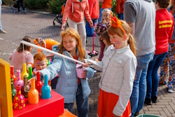 de festiviteiten werd de kraam gelijk goed bezocht. Veel kinderen kwamen